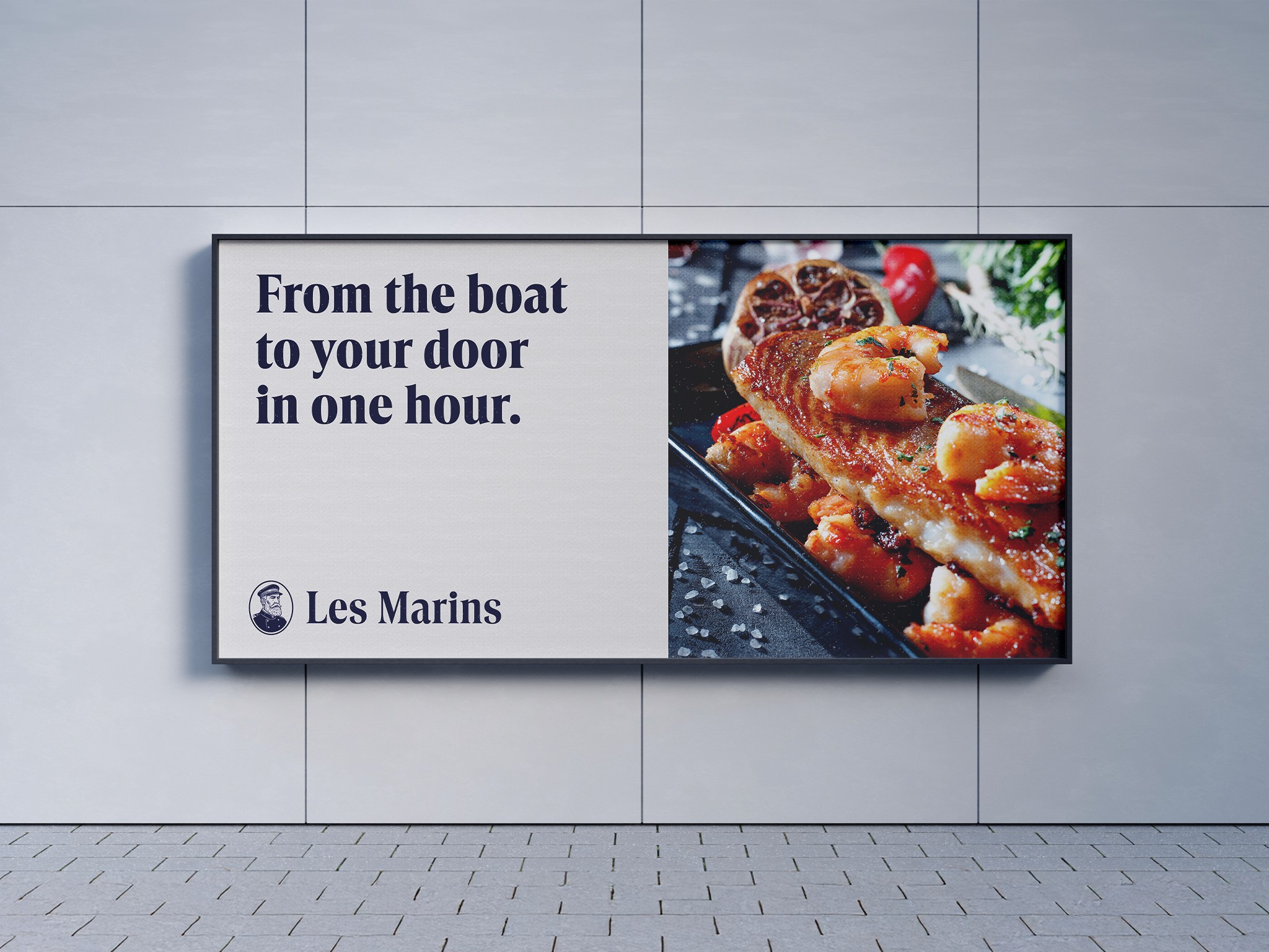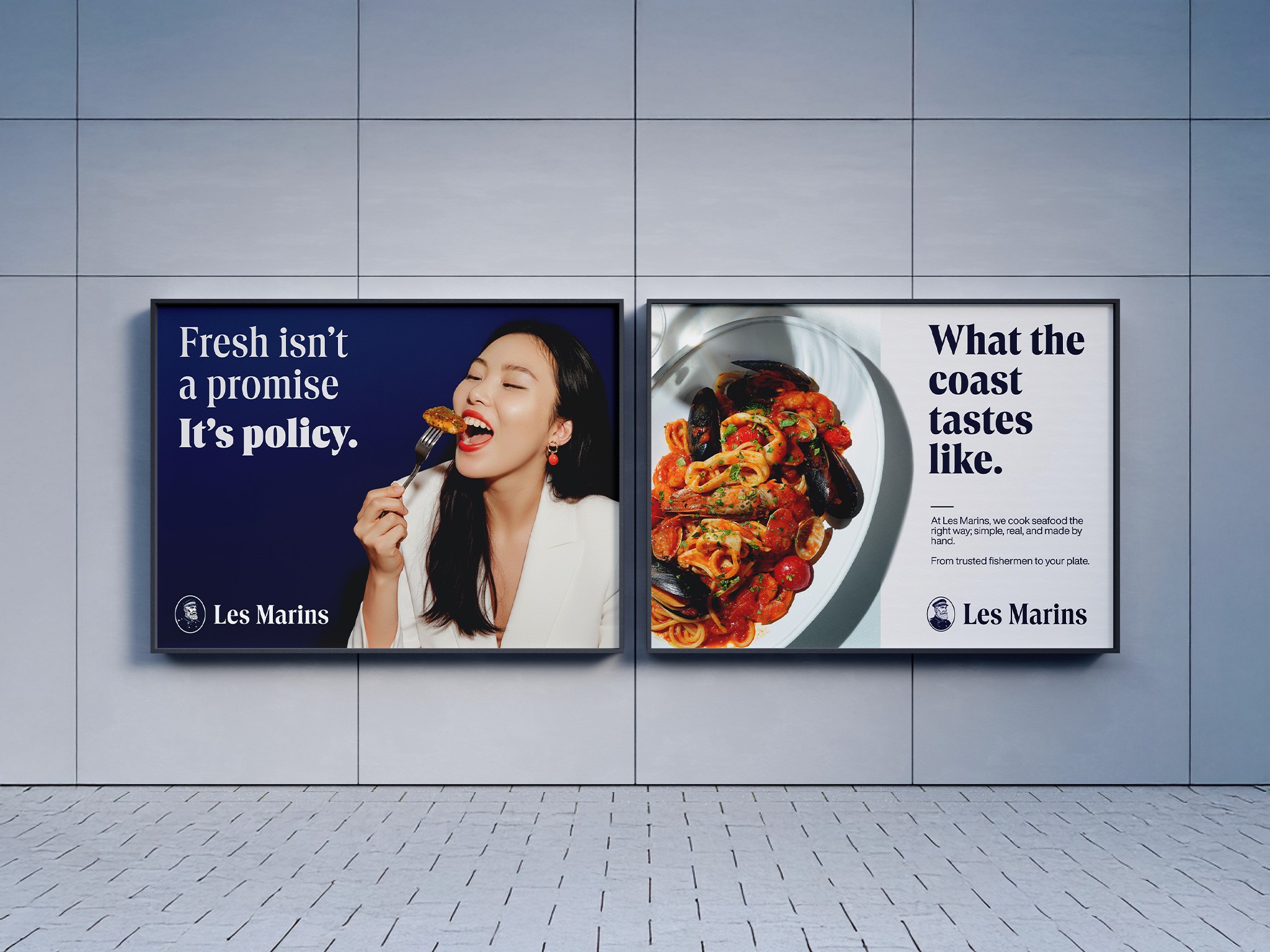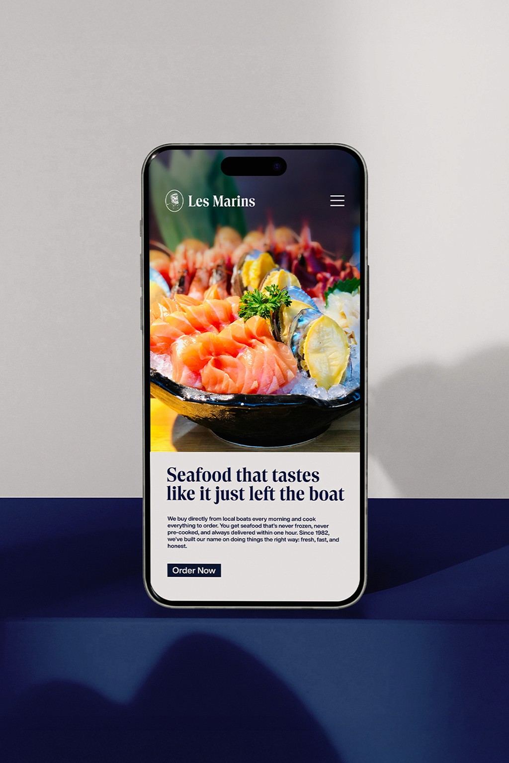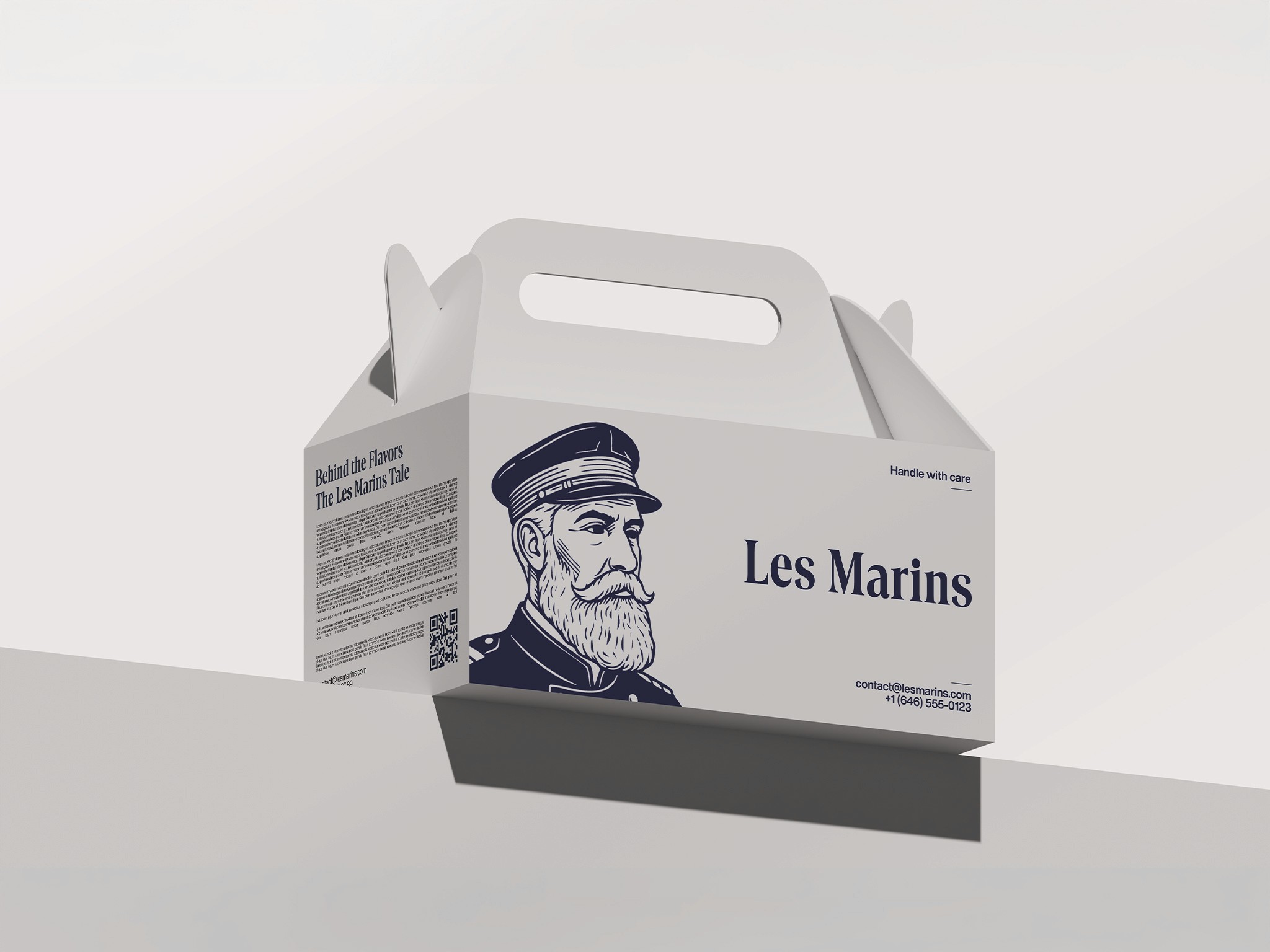 Captured through the face of a sailor, a symbol of trust, craft, and connection to the ocean. With a clean design and calm coastal palette, the brand now communicates what Les Marins truly stands for: real seafood, made the right way.